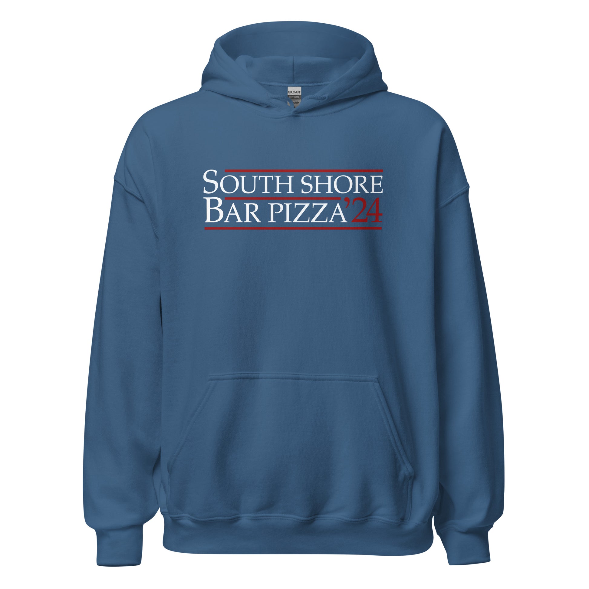 In recognition of the world famous South Shore Bar Pizza Social Club Facebook, large hockey style logo proudly displays your membership of elite pizza connoisseurs. If you fold a bar pizza in half it will fit in the large front pocket.